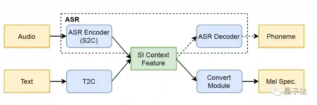 此外,火山语音自研的Imitator模型结构还可以做到从音频中提取与说话人无关的隐层语音表征(SI Context Feature),例如更多的韵律以及口音信息等,并以此作为文本与音频的中间特征来进行辅助模型训练,让音色还原更加准确。