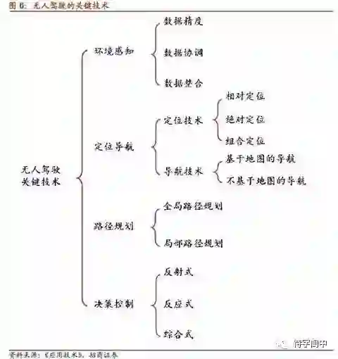 无人驾驶技术是一个涉及传感器、计算机、信息通讯、自动控制、导航定位、机器视觉、人工智能等多诸多前沿学科的综合技术。根据无人驾驶的职能模块,可将无人驾驶的关键技术分为:环境感知技术、定位导航技术、路径规划技术和决策控制技术。