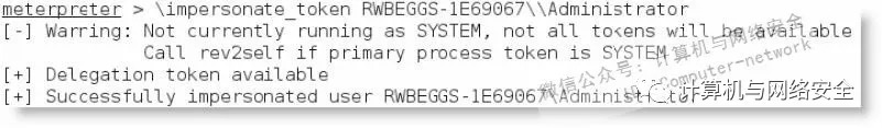 当在incognito中调用mpersonate_token命令时(如下图所示),注意这两个反斜杠在命令中是必要的。