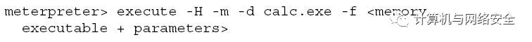 为了避免这种情况的发生,用Metasploit框架,使用命令来运行在目标内存中的可执行文件,这个命令如下: