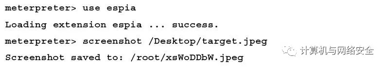meterpreter还有一些有用的、支持复杂功能的库。例如,espia库支持通过如下命令对入侵系统进行截图: