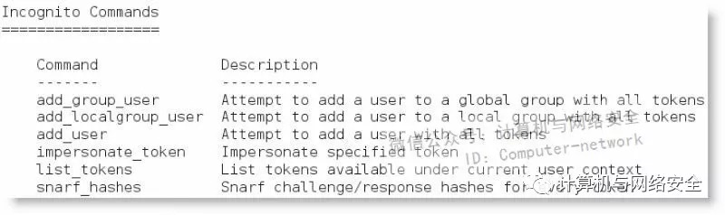 incognito是一个特别有趣的meterpreter库,它允许你伪造和重放用户令牌。令牌是临时密钥,它允许你在不提供密码或其他凭证的前提下,访问网络和系统资源。这些令牌将持续存在一个系统中,除非系统重新启动。