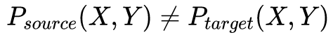 在使用机器学习、人工智能中的技术手段解决实际问题的时候,常常会遇到领域迁移(domain shift)问题。具体地说,领域迁移是指用于训练的源数据集与用于预测和推断的目标数据集的分布不一致,即: