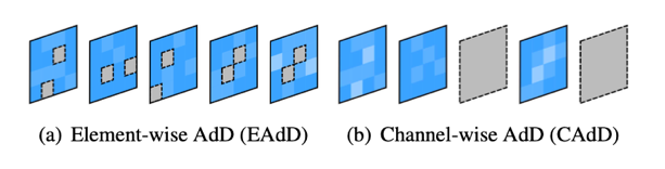 这是一篇典型的对特征提取器作修改的论文。作者引入了 EAdD (Element-wise Adversarial Dropout)和 CAdD (Channel-wise Adversarial Dropout)。