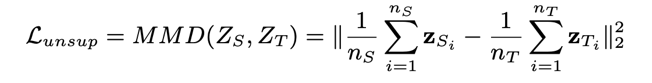 接下来又是一个粗暴的基于距离的非监督损失,用来拉近源数据集与目标数据集特征向量分布的距离。(这里应该是把z看做了高斯分布,那么z的均值就是高斯分布的中心,但是没有考虑方差)。