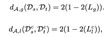 接下来分析一下动态对抗因子(dynamic adversarial factor)的计算,首先定义全局 A- 距离(global A-distance)和局部 A- 距离(local A-distance)。