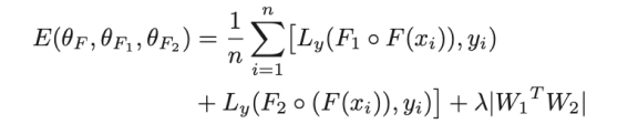 因为论文假设我们的目标数据集是没有标签的,所以作者决定从特征维度进行对准。上边的公式整体上比较熟悉了,交叉熵加上一个源数据集与目标数据集的协方差对准。
