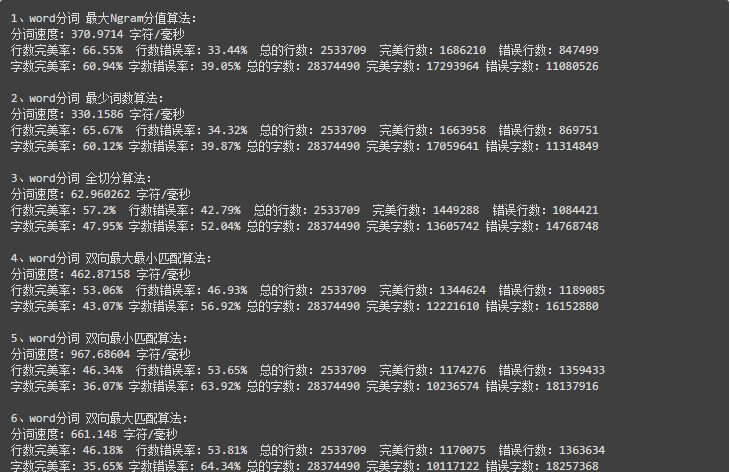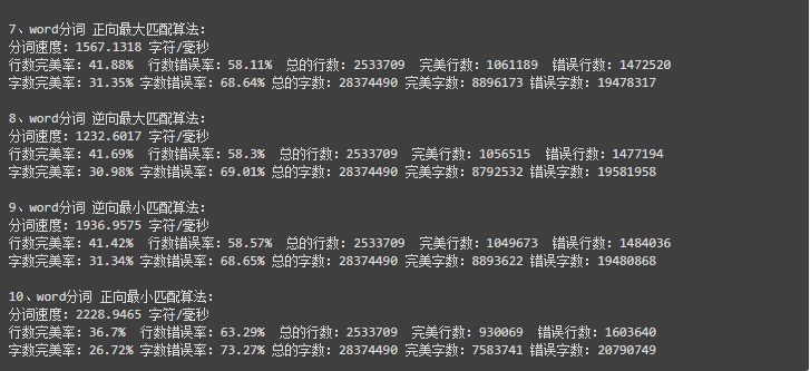 词典分词(侧重速度,每秒数千万字符;省内存)