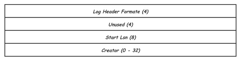 其中第一个Header Block的数据区域记录了一些文件信息,如下图所示,4字节的Formate字段记录Log的版本,不同版本的LOG,会有REDO类型的增减,这个信息是8.0开始才加入的;8字节的Start LSN标识当前文件开始LSN,通过这个信息可以将文件的offset与对应的lsn对应起来;最后是最长32位的Creator信息,正常情况下会记录MySQL的版本。