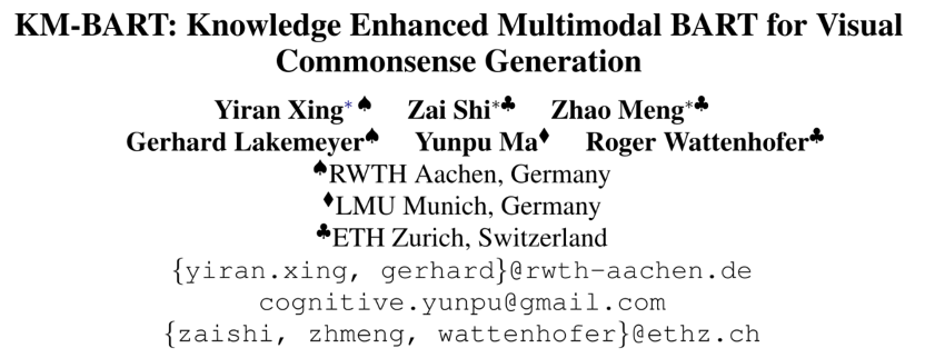 文章提出了知识增强的多模态BART (KM-BART ),这是一个基于Transformer的模型,能够从图像和文本的跨模态输入中推理和生成常识描述。同时提出了基于知识的常识生成的预训练任务,该任务通过利用在外部常识知识图上预训练的大型语言模型来提高KM-BART的推理能力。作者使用自我训练来过滤自动生成的常识性描述。在VCG任务上的实验结果表明,KM-BART在预训练任务上达到了最佳性能。进一步的人工评估表明,KM-BART可以产生高质量的常识推理。
