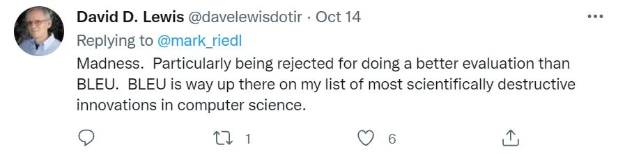 还有直接对 BLEU 开炮的,认为这是计算机科学最具破坏力的发明之一。