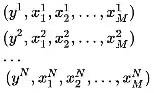我们从线性回归模型开始吧。我认为,每个人在学习期间都会以某种方式遇到线性回归模型。线性回归模型的目标是在观察到的特征和观察到的实际输出之间找到一个线性映射,以便当我们看到一个新的示例时,我们可以预测输出。在这篇文章中,我们有N个观测样本,其输出是y,每一个观测样本x有M个特征,这些信息用于训练。