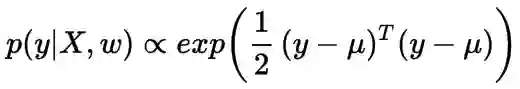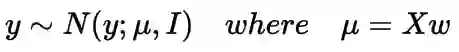 在开始时,我们说输出是一个实数值。实际上,我们假设输出是从正态分布中采样得到的,可以通过设置其是以均值为Xw和方差为I(单位方差)的正态分布,如下所示,