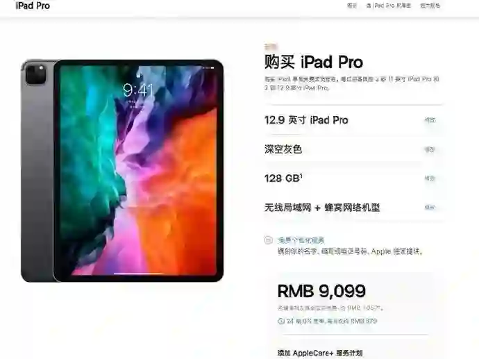 -12.9 英寸 iPad Pro 起售价为:9099 元。