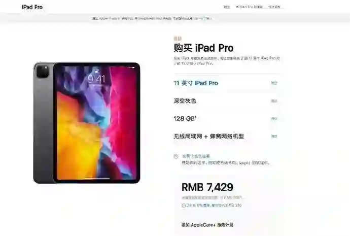 今日 iPad Pro 2020 款的无线局域网 + 蜂窝网络机型在苹果官网开售。