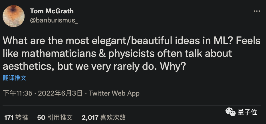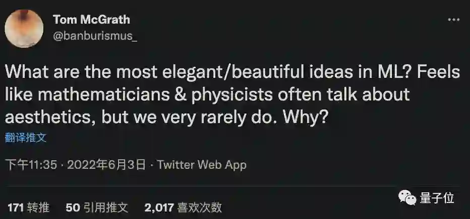 之所以会有这样的疑问,是因为他发现数学家和物理学家们就经常谈论美学,机器学习领域却很少这样,也很好奇为什么。