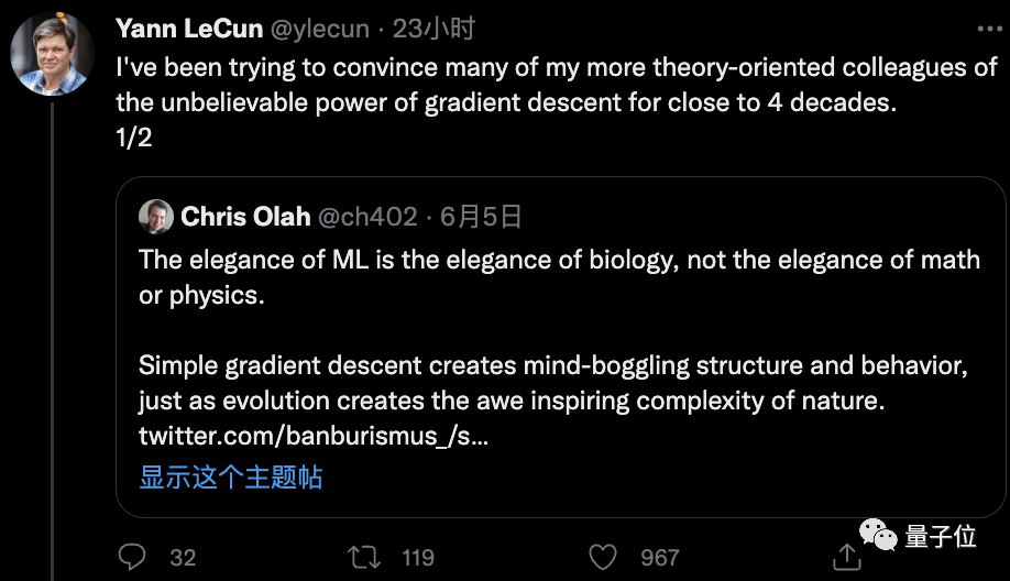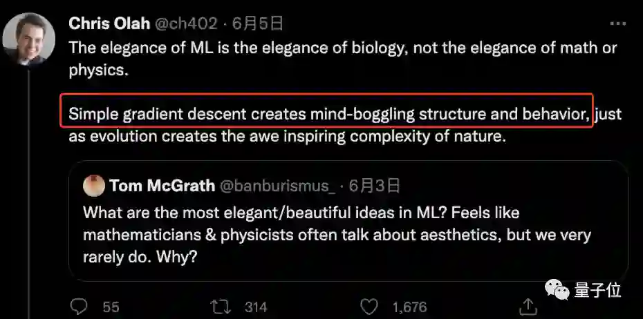 真正引起讨论的还是Chris Olah小哥那句“机器学习的美是生物学之美,而不是数学或者物理学之美”。