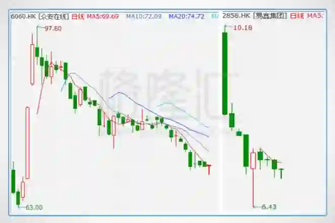 我们看易鑫的走势,上市后股价连续下跌,最低跌至6.43,低于7.7的发行价,这不正像美图上市后,股价连续下挫,一度跌至7.46,低于8.5的发行价。