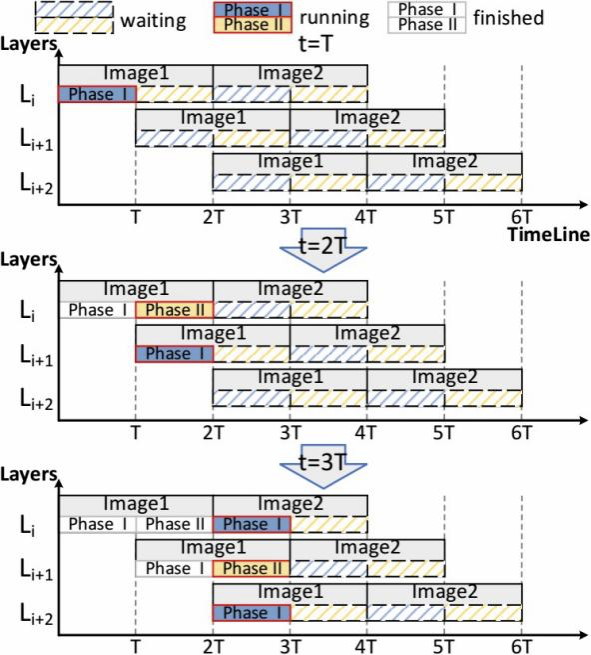 以上示意图展示了图片推理的执行示意图。核心是利用层间并行,实现不同图片的两个执行阶段重叠,降低推理时延。