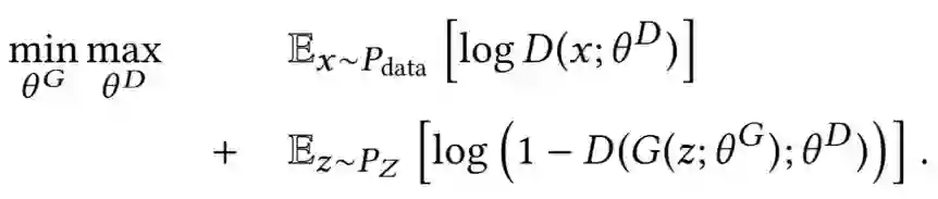 我们的工作受到GANs的启发,GANs可以被看作是两个玩家之间的一个极小极大的博弈,即生成器G和鉴别器D。具体的优化形式如下所示:
