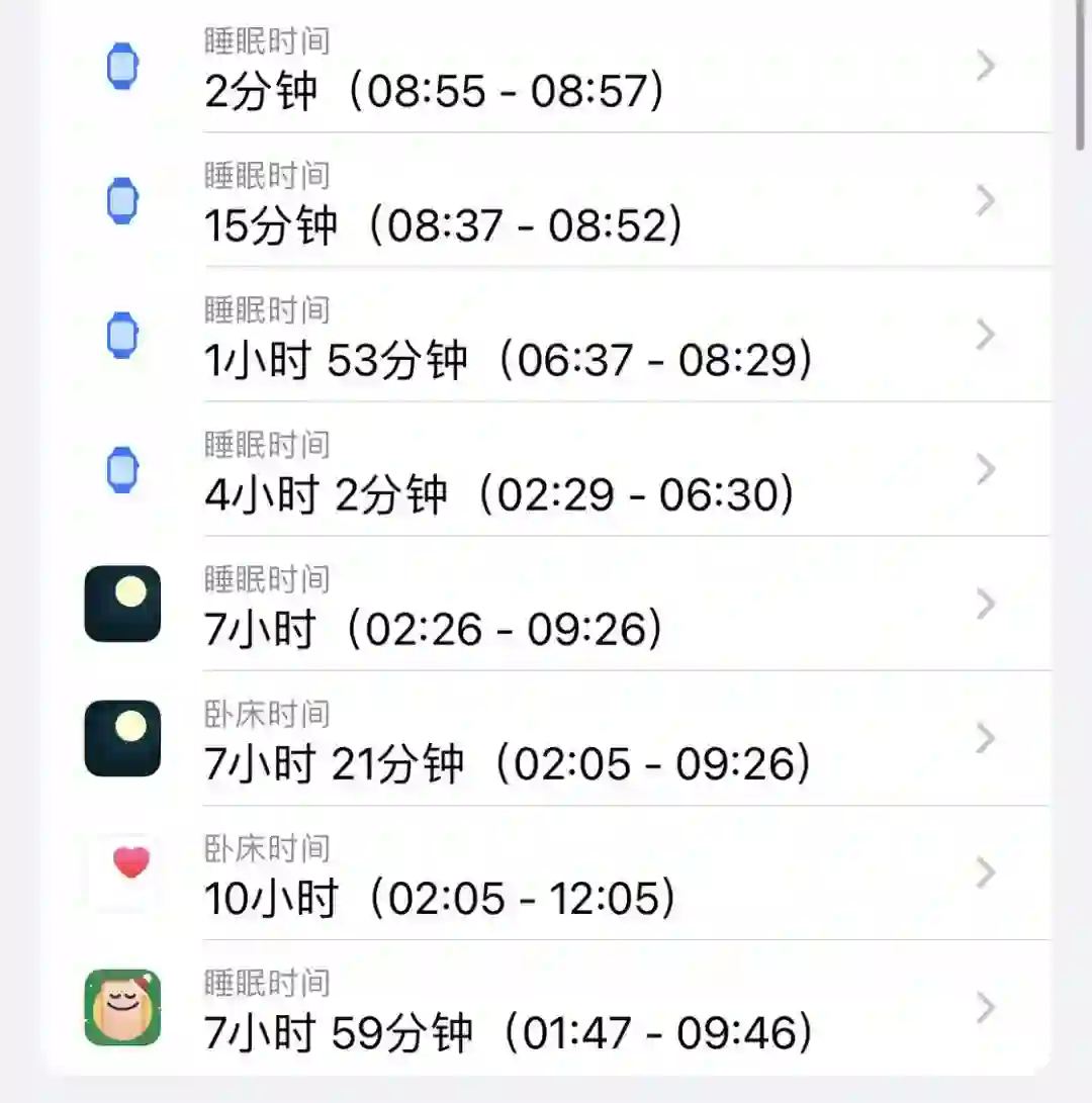 得益于 Apple Health,几乎所有睡眠软件都会将自己记录的数据同步到 Apple Health 中,StaySleep 也可以直接从 Apple Health 中读取不同 App 记录的睡眠数据,以减少「数据孤岛」的情况,实现了与其他 App 间的数据联动。理论上,只要其他 App 会把数据同步到健康中,StaySleep 就读取记录的睡眠数据。