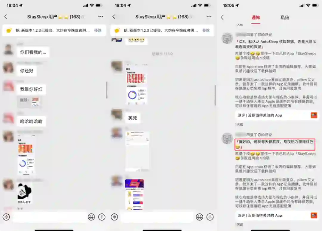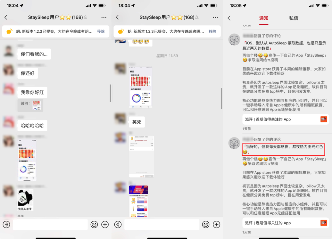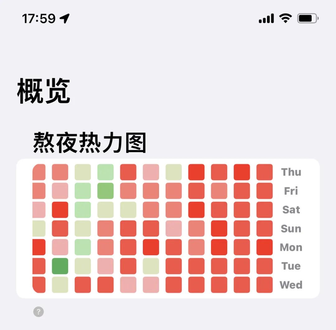 在 App 上线半个月以来,我在用户群里看到了很多分享自己「一片红」的熬夜热力图,很多朋友也坦言,在尝试 StaySleep 之前,即使在使用其他睡眠 App,也从来没有意识到自己熬夜的次数原来这么的频繁。