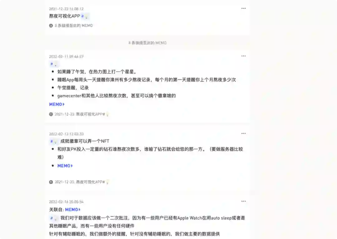 在四个月左右的学习代码过程中,我也头脑风暴出了很多的新点子,比如可以和好友竞赛看谁熬夜次数更少、记录并统计每天的睡眠地点、更多的成就系统等等……这些头脑风暴都记录在了我的小本本里,如果技术允许的话,我也会一个个实现这些似乎可以带来更多幸福感的功能。