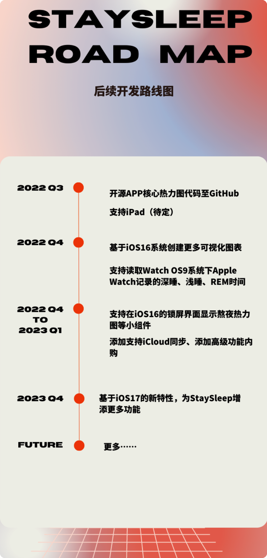 在我看来,代码的意义有两种,一种是帮助人们探索更多领域的未知,另一种是帮助人们改善他们的生活,或许我认为 StaySleep 是后者。看着 StaySleep 的开发一步步走向正轨,这种感觉就像是我的孩子越来越茁壮成长。虽然它还有很多的缺点,可能也并不能成为大众眼里的明星,但是没有关系,只要他能够帮助到大家,改变自己的熬夜习惯,或者让大家意识到自己正在熬夜,哪怕只影响了一个人,那也达成了我对它的期待。