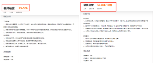 甚至一度开出高达25-50k、50-80k的月薪,只为了找到懂会员体系搭建、权益设定的运营人!