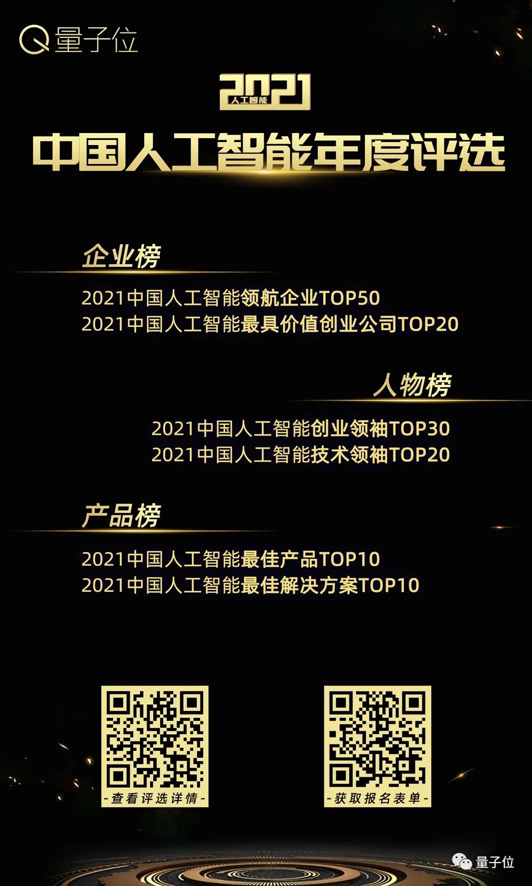 「2021中国人工智能年度评选」报名中!本次评选将从公司、人物、产品三大维度寻找优秀的AI企业,欢迎大家扫码报名参与。评选将于12月揭晓,期待与百万从业者们,共同见证这些优秀企业的荣誉!