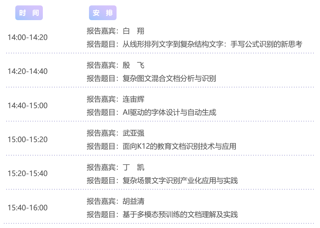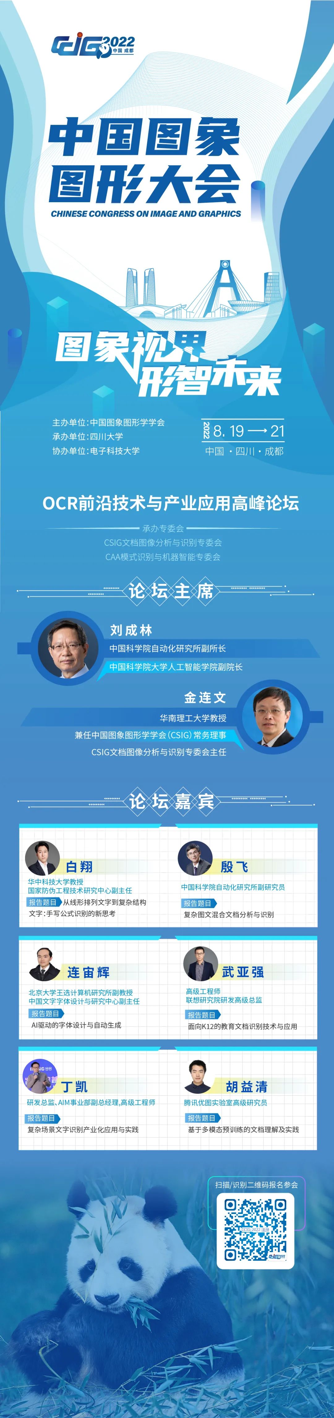 在CCIG 2022期间,会议将举办OCR前沿技术与产业应用高峰论坛,论坛信息如下。