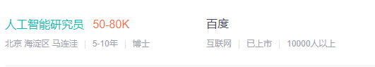 尤其是华为爸爸,为了吸纳人才,开出了上限100k的薪资!当然也需要5年以上的人才,所以AI领域或准备学习AI的读者们,一定要坚持学习,虽然在开发领域,AI属于很高端、比较难啃的部分,但是只要学成,前途也是非常明朗的。