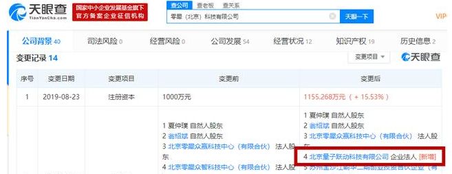 就在上周,我们通过天眼查获悉,零犀(北京)科技有限公司发生投资人变更,新增北京量子跃动科技有限公司,持股比例为10%。