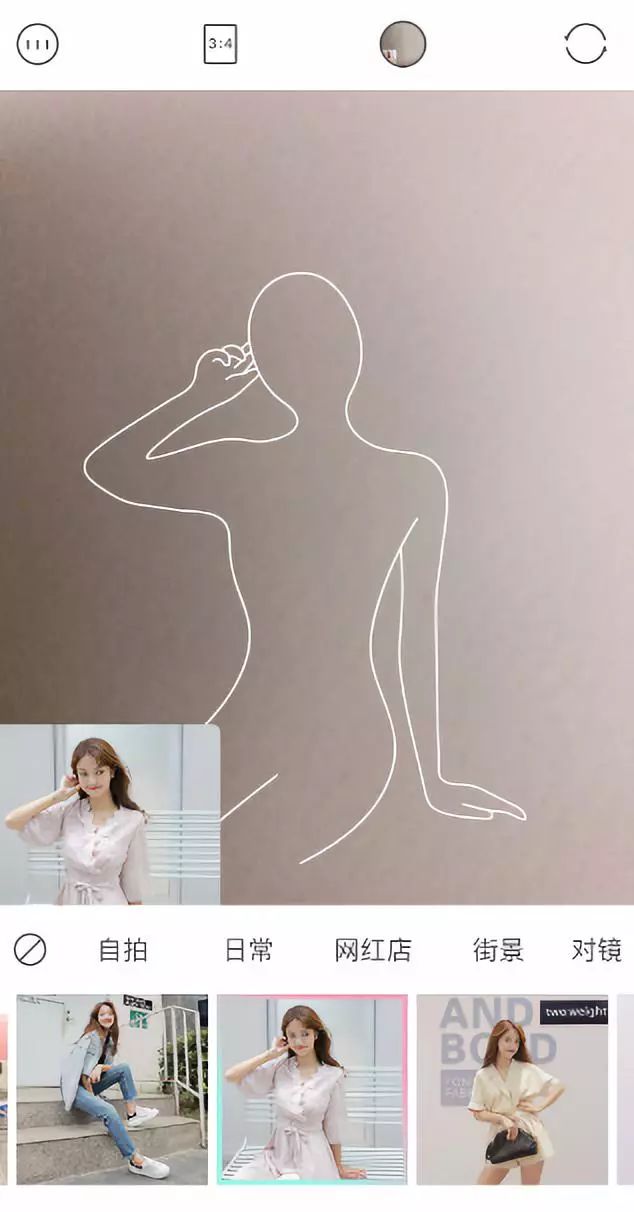 轻颜相机的另一个创新点是,通过网红明星的美照姿势为用户提供模板,解决选景点、摆姿势、做表情等痛点。