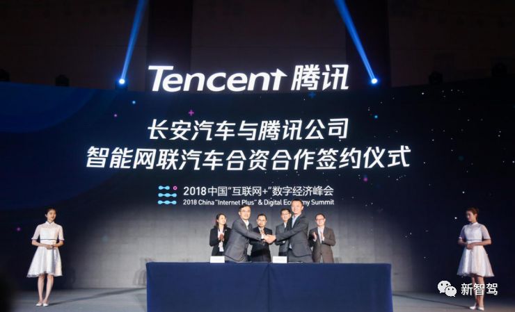 新智驾消息,北京时间 4 月 12 日,2018 中国“互联网+”数字经济峰会在山城重庆举行,此地也是长安汽车的总部。借着此次峰会,腾讯和长安汽车正式签署智能网联汽车合资合作协议。双方将在车联网、大数据云等领域共同打造面向行业的开放平台,为汽车行业提供成熟、完善的智能车联网整体方案。