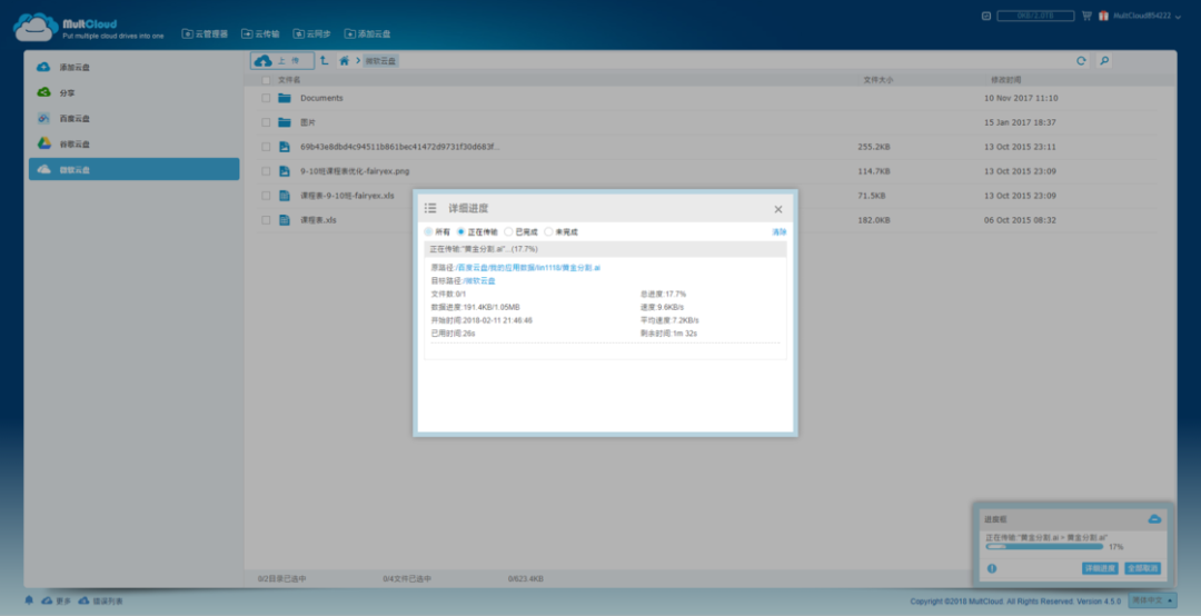 当你使劲浑身系数精疲力竭都无法从「限速」这个恶魔手中逃出来,那么可以考虑这个高级方法了。你可以将下不动的文件使用 multcloud 这个网站将文件同步到其他不限速的网盘后再下载,既然离开了某网盘,那么自然就没有「限速」这回事儿了。multcloud 是一个在线网盘管理服务,支持包括添加某网盘,私人 FTP 与 NAS 在内的数十个网盘,并在它们之间通过服务器随意同步自己文件空间里面的文件。不过这个网站在不同地区不同网盘间的同步速度非常玄学,建议不是那么急着下载或者实在是不想使用某网盘下载时再使用这项服务。并且请在同步私人文件前了解网站和相关网盘的用户条款。