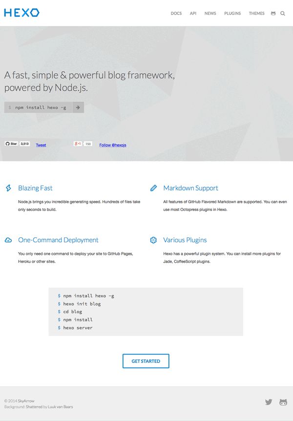 Hexo 是一个基于nodejs 的静态博客网站生成器,作者是来自台湾的 Tommy Chen。