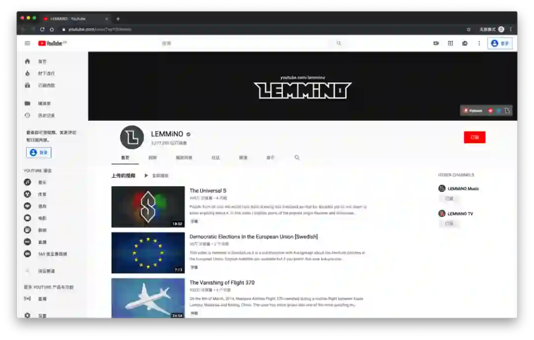 这是我认为制作最认真 视频最精良 的 channel 没有之一,没有一期水的,也不功利。多的是科学文化的科普的内容,最感动人的以前做的年度总结 特别喜欢这位的观点 非常宏大。
