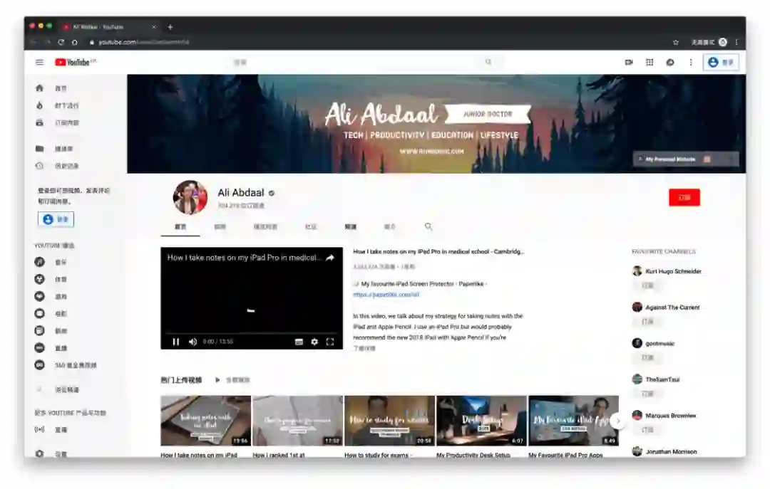 一位剑桥毕业的医学生,目前是一名驻院医生。或许大家都熟知,学习区博主的专业通常就是医学和生物。所以 Ali 的业余 YouTube 就是有关学习的,他经常使用最新的科技产品,将科技的手段融入工作学习的流程中,非常具有参考意义。另外有网站和播客。