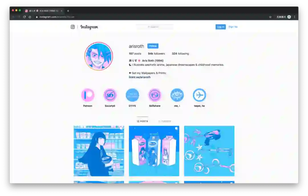偏爱用浅蓝和粉红色彩彰显画面的画师,他的作品充满日本梦幻和童年的回忆。