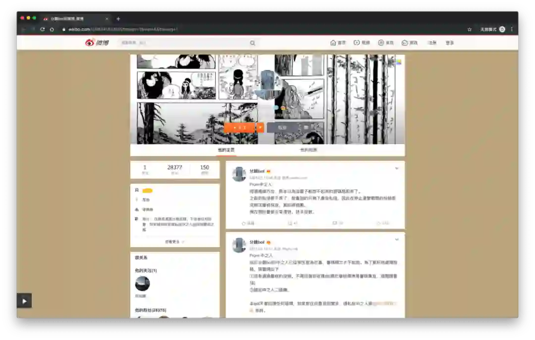 微博在我看来是一个严肃(指杠人撕 x 以及给爱豆打call 等等方面)的社交平台,自己也一直不时清理关注人的习惯。所以到最后剩下有趣的博主不多了,但 @