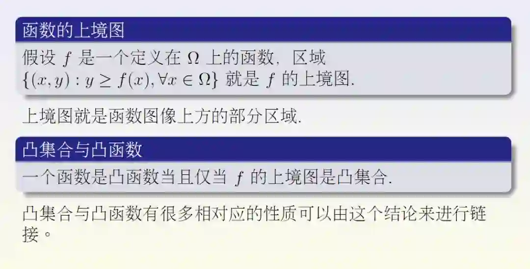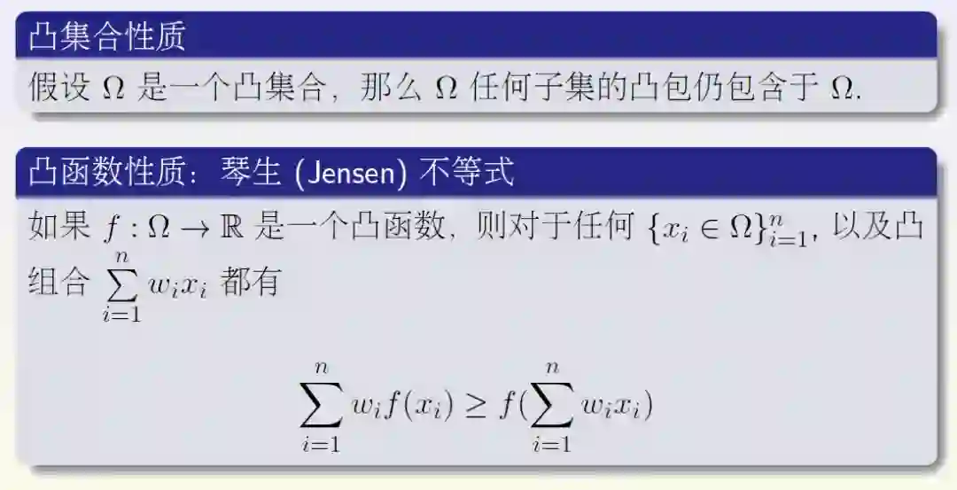 凸函数代数性质与凸集合的几何性质;琴生不等式的几何解释。