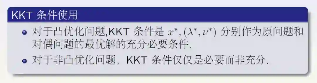 KKT条件可以用来求解一些优化问题;拉格朗日乘数法是KKT条件的一种特殊形式。