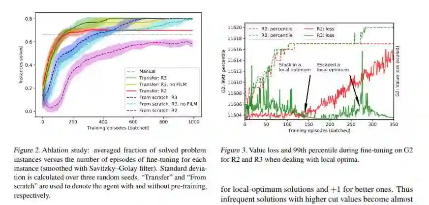 摘要:量子硬件和量子启发算法在组合优化中越来越受欢迎。然而,这些算法可能需要对每个问题实例进行仔细的超参数调优。我们使用一个强化学习代理与一个量子启发算法来解决能量最小化问题,这相当于最大割问题。代理通过调整其中一个参数来控制算法,其目标是改进最近看到的解决方案。我们提出了一个新的重新排序的奖励(R3)方法,使稳定的单机版本的自我游戏训练,帮助代理人逃脱局部最优。对任意问题实例的训练都可以通过应用对随机生成问题训练的agent的转移学习来加速。我们的方法允许采样高质量的解决方案,以高概率,并优于基线启发和一个黑匣子超参数优化方法。