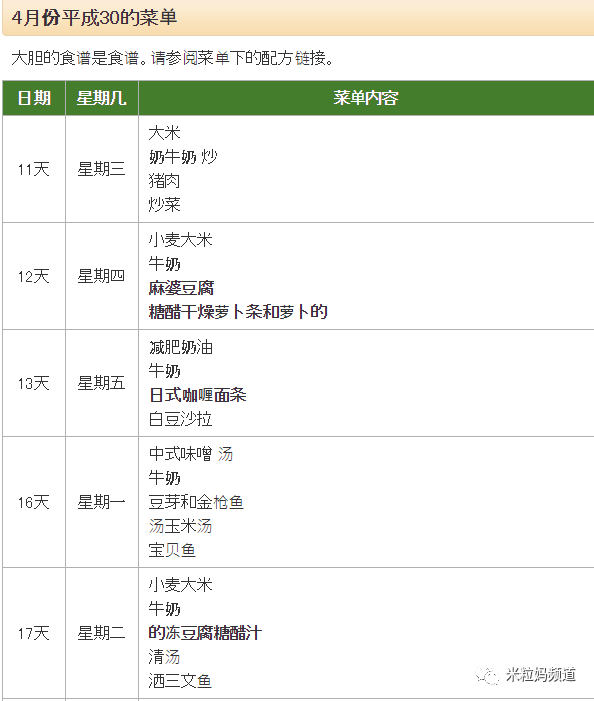 随便戳开4月18日当天的菜单,马上跳出一个网页,上面标明当日的午餐: