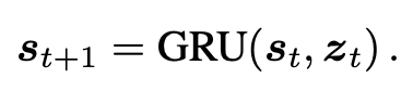 Zt 表示的是 t 时刻 RNN 的输入,得到输入之后,利用 RNN 进行更新,这里使用的是 GRU,即: