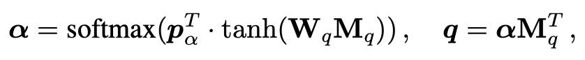 首先还是会利用一个双向 LSTM 对问题进行编码,得到问题的隐状态表示,接下来是首先利用 self-attention 对问题进行处理,从而得到问题的语义表示,而这些权重表明了问题中哪些词是非常重要的,并且过滤了那些不重要的词。