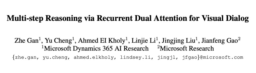 当前 Visual dialog 模型尽管已经取得了令人印象深刻的表现,但当问题涉及到图像的特定区域或者比较细节的对话片段时,模型就很难给出准确的答案。究其原因,单步的分析需要同时关于太多的信息,当需要特定的位置或者说需要对问题和图像,对话历史进行反复理解时,单步理解就收到了很大的限制。