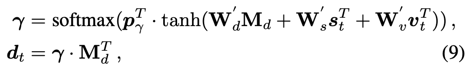 该模块的整体框架是一个 RNN,每一步的隐状态表示的问题的当前表示,并会作为 query 去检索文本和图像信息,具体流程可以表示为,这个可以看作 one-step reasoning,通过这样的一个循环方式,从而实现对细节的把握,从而最终给出正确的答案。