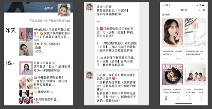 第三,个性化。诸如完美日记,它的每一个销售人员虽然都叫“小完子”,但是你加的这个“小完子”和他加的那个“小完子”不一样,这就是个性化。这个“小完子”和你的沟通内容,以及对你的喜好掌握也更加个性化。如此的个性化靠单向交流关系很难实现。